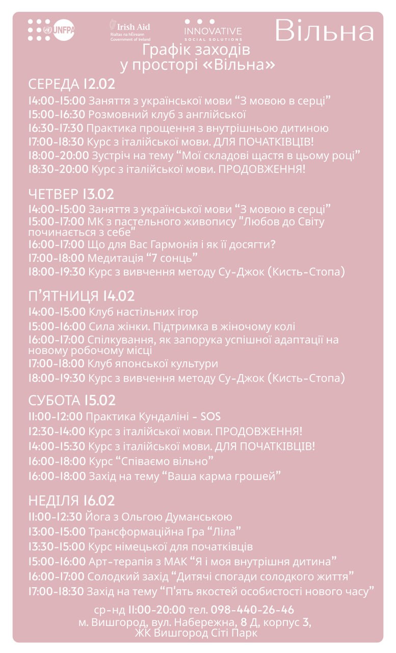 12-16 ЛЮТОГО ЗАХОДИ ЦЬОГО ТИЖНЯ У ПРОСТОРІ "ВІЛЬНА" У ВИШГОРОДІ