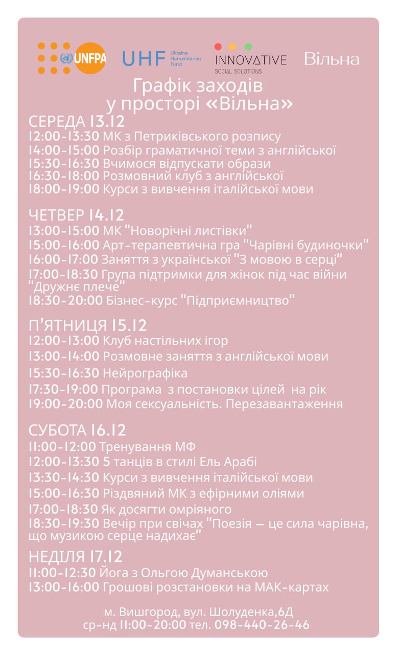 АНГЛІЙСЬКА, МАЙСТЕР-КЛАСИ, БІЗНЕС-КУРСИ ТА СПОРТ ДЛЯ ЖІНОК У ПРОСТОРІ "ВІЛЬНА" У ВИШГОРОДІ