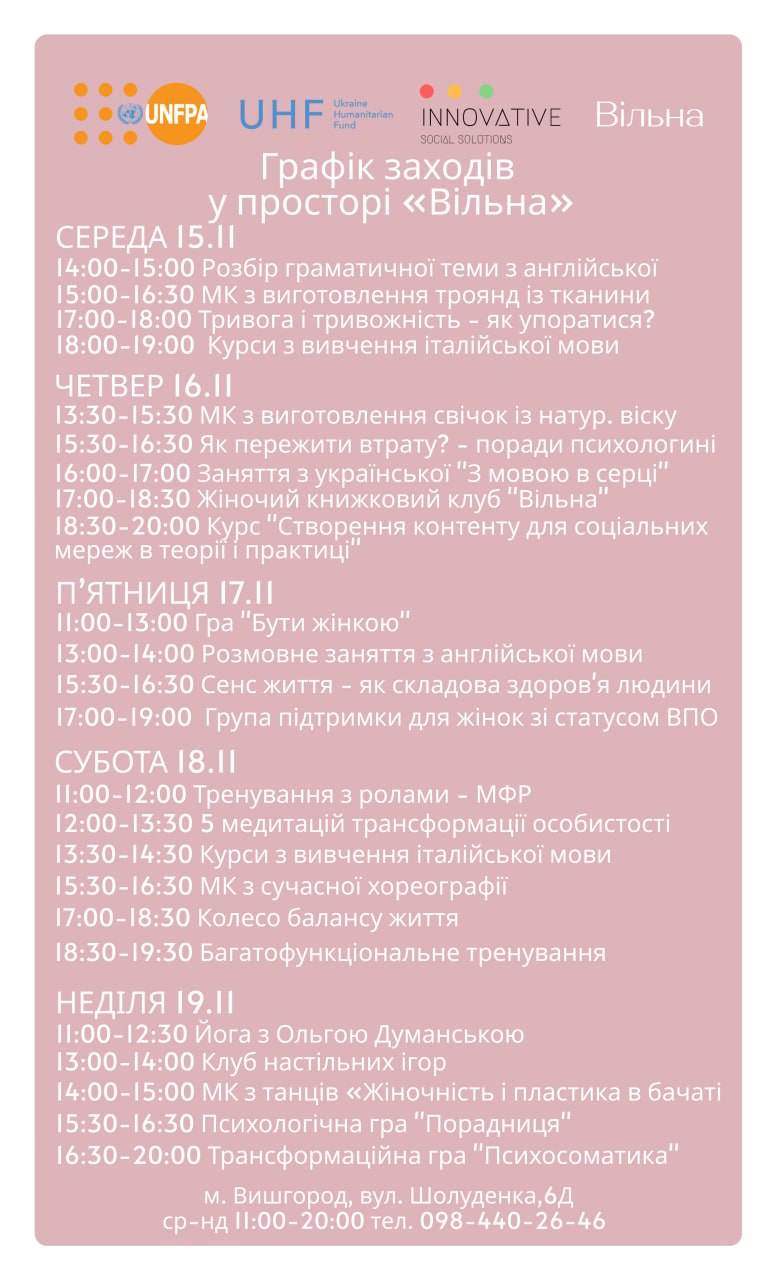 Локація Громадський простір для жінок та дівчат "ВІЛЬНА" у Вишгороді