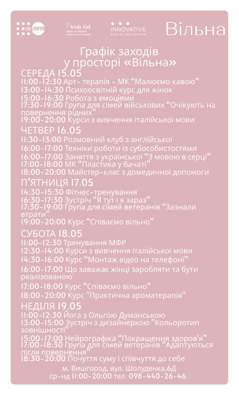 психологічними практиками, вивчити італійську мову у Вишгороді, навчитися співати та інше.