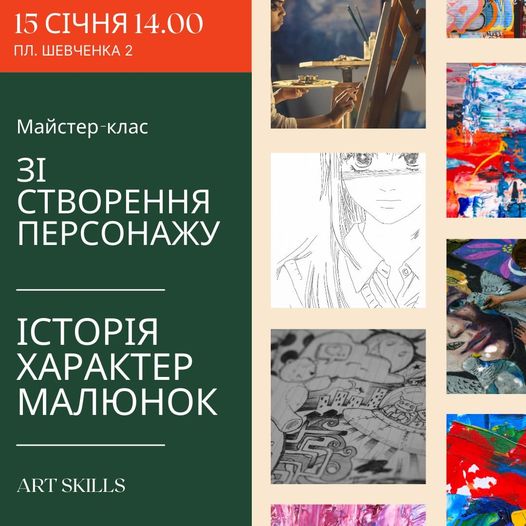 15 січня 2022 року о 14:00 пройде майстер-клас зі створення персонажу від Освітній простір "Art Skills" за підтримки "Молодіжна рада при Вишгородській міській раді".