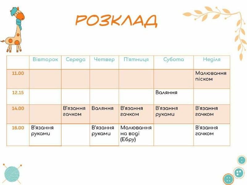 20-25 СЕРПНЯ МАЙСТЕР-КЛАСИ ДЛЯ ДІТЕЙ У "МАЙСТЕРНІ ЖИРАФИ ЛІЛІ" У ВИШГОРОДІ