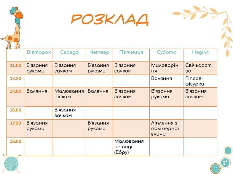 25-30 ЛИСТОПАДА ЗАХОДИ ЦЬОГО ТИЖНЯ У "МАЙСТЕРНІ ЖИРАФИ ЛІЛІ" У ВИШГОРОДІ