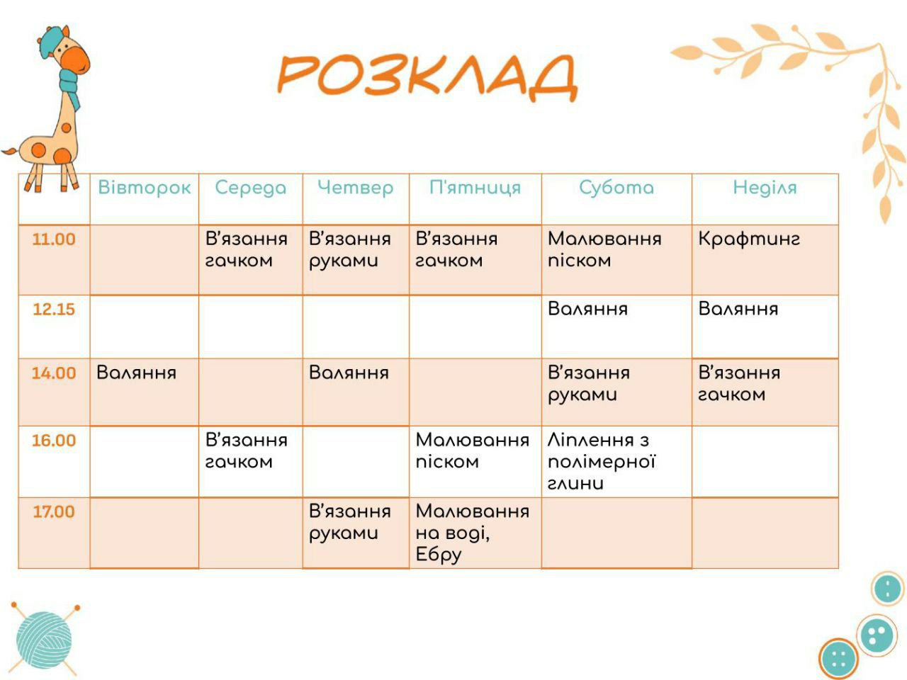 25 ЛЮТОГО - 2 БЕРЕЗНЯ ЗАХОДИ ЦЬОГО ТИЖНЯ У "МАЙСТЕРНІ ЖИРАФИ ЛІЛІ" У ВИШГОРОДІ