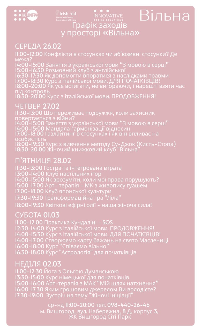 26 ЛЮТОГО-2 БЕРЕЗНЯ ЗАХОДИ ЦЬОГО ТИЖНЯ У ПРОСТОРІ "ВІЛЬНА" У ВИШГОРОДІ