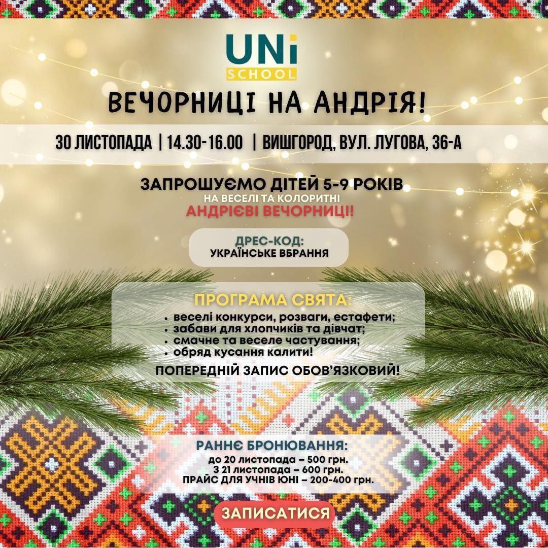 Вечорниці на Андрія! Запрошуємо усіх дівчаток та хлопчиків 5-9 років на веселі та колоритні Андрієві вечорниці!