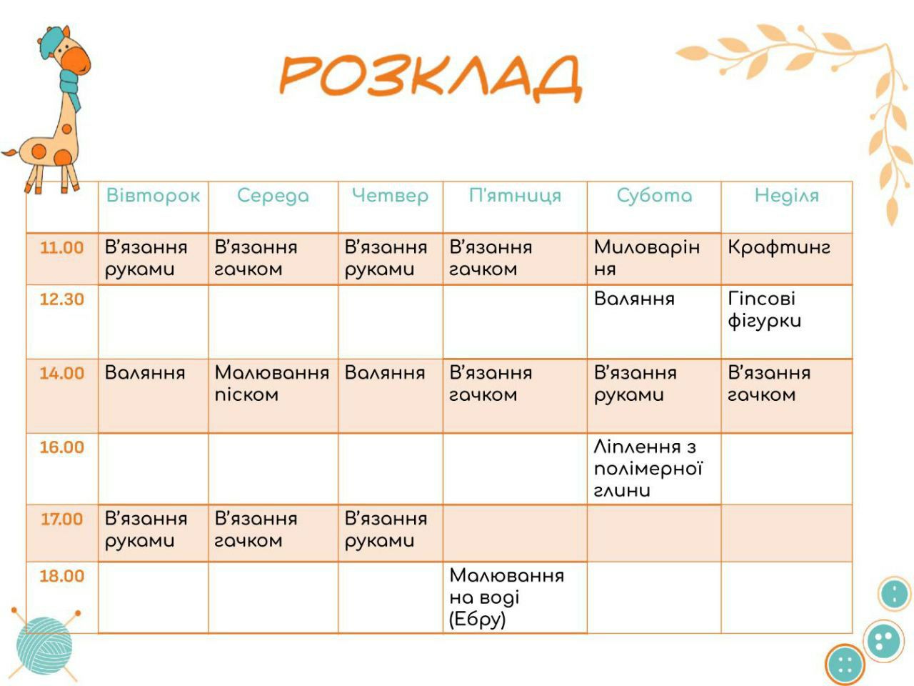 4-9 ЛИСТОПАДА ЗАХОДИ ЦЬОГО ТИЖНЯ У "МАЙСТЕРНІ ЖИРАФИ ЛІЛІ" У ВИШГОРОДІ