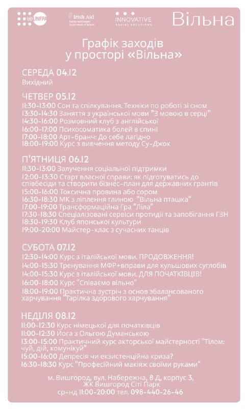 5-8 ГРУДНЯ ТАНЦІ, ІТАЛІЙСЬКА МОВА ТА ІНШЕ У ПРОСТОРІ "ВІЛЬНА" У ВИШГОРОДІ