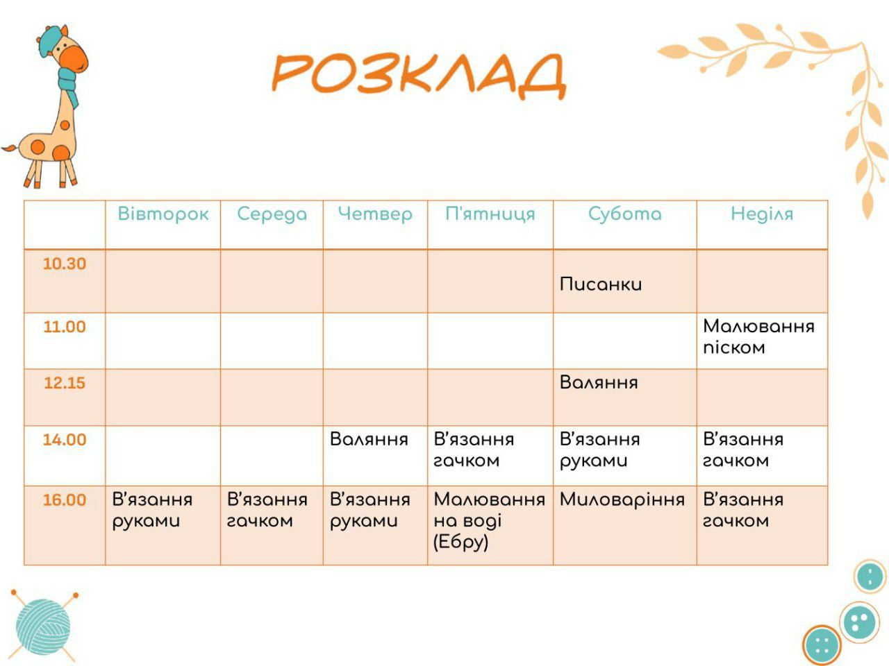 "Зверніть увагу, що в неділю занять не буде"