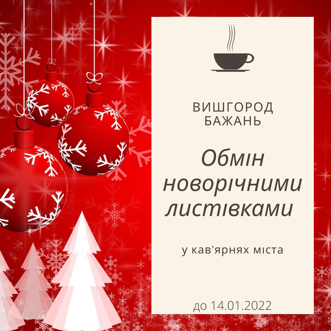 "Молодіжна рада при Вишгородській міській раді" організувала чудову акцію "Вишгород бажань". "Відтепер йдучи за запашною кавою,ви можете отримати новорічну листівку від абсолютно випадкової людини", – зазначають вони.