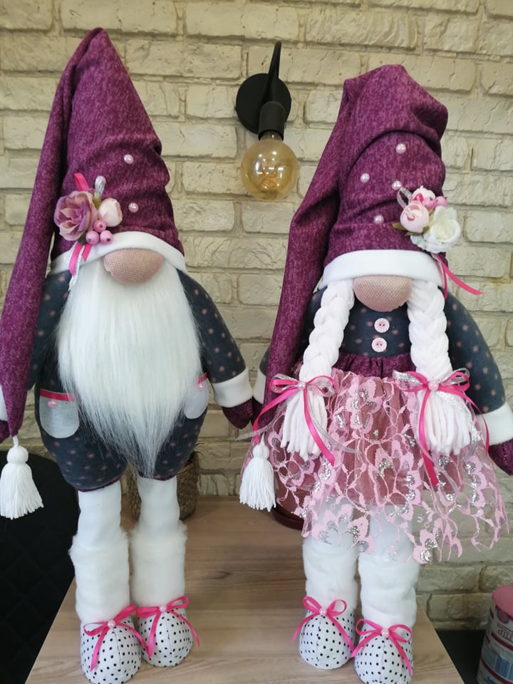 Доброго дня, мене звуть Олена і я створюю інтер'єрні іграшки - скандинавські гномики. Зараз подібні вони стали дуже модними, але це не лише іграшка, а преш за все сильний оберіг, символ достатку і домашнього затишку. Гноми охороняють і піклуються про новий дім та його мешканців. Я виготовила понад 300 гномиків, які вже радують своїх власників. Для пошиття іграшок використовую високоякісні матеріали - це фетр, волокнина, м'який трикотаж, фліс та хутро. Вироби прикрашені декоративною фурнітурою, стрічками та квітами.