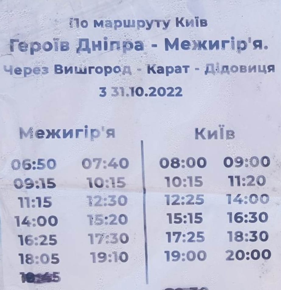 Межигір'я-Київ(Героїв Дніпра) (через Вишгород, карат, Дідовиця)