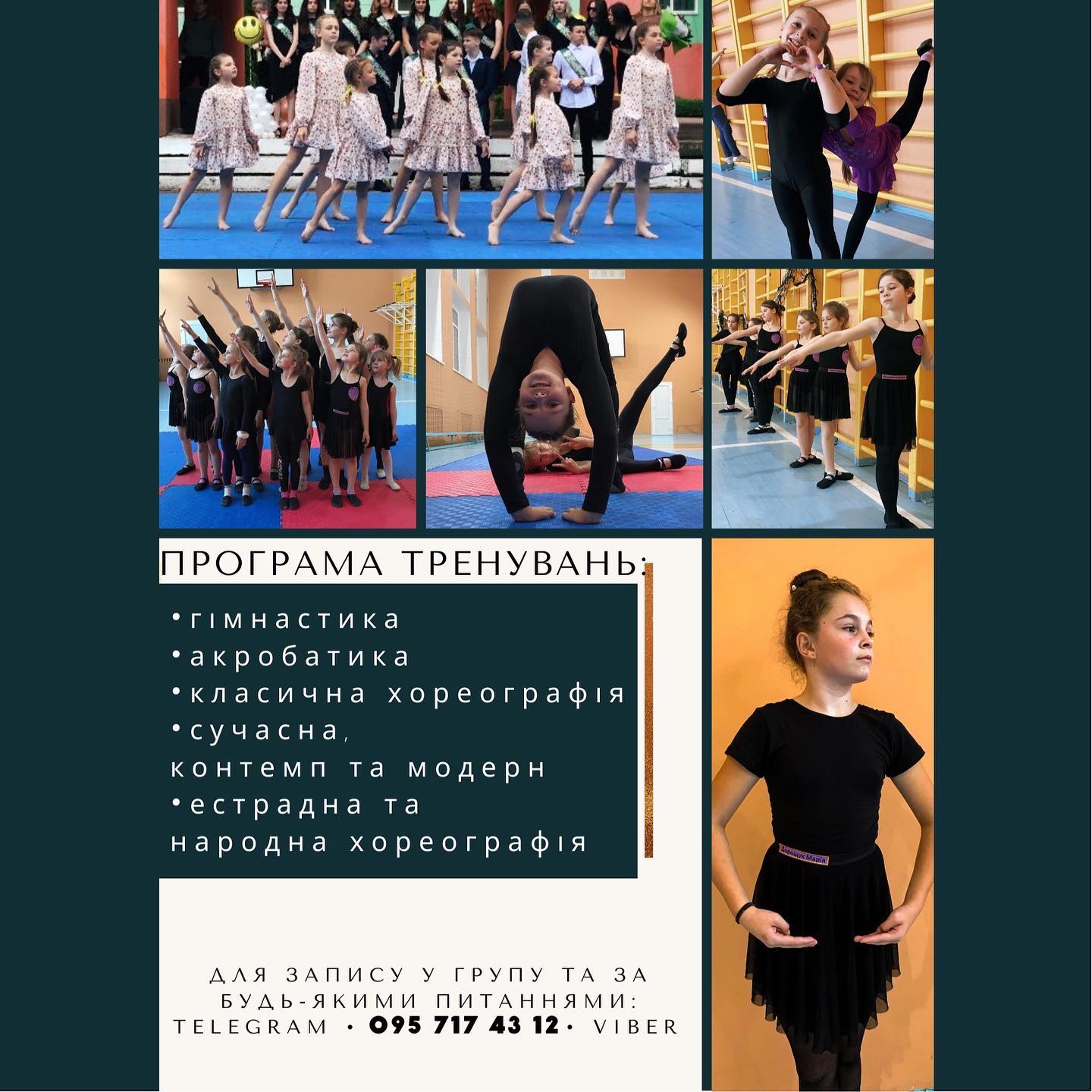 - естрадна сучасна хореографія, сучасна та класична хореографія (від 4 років)